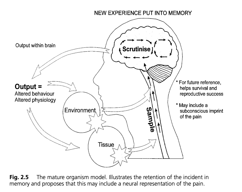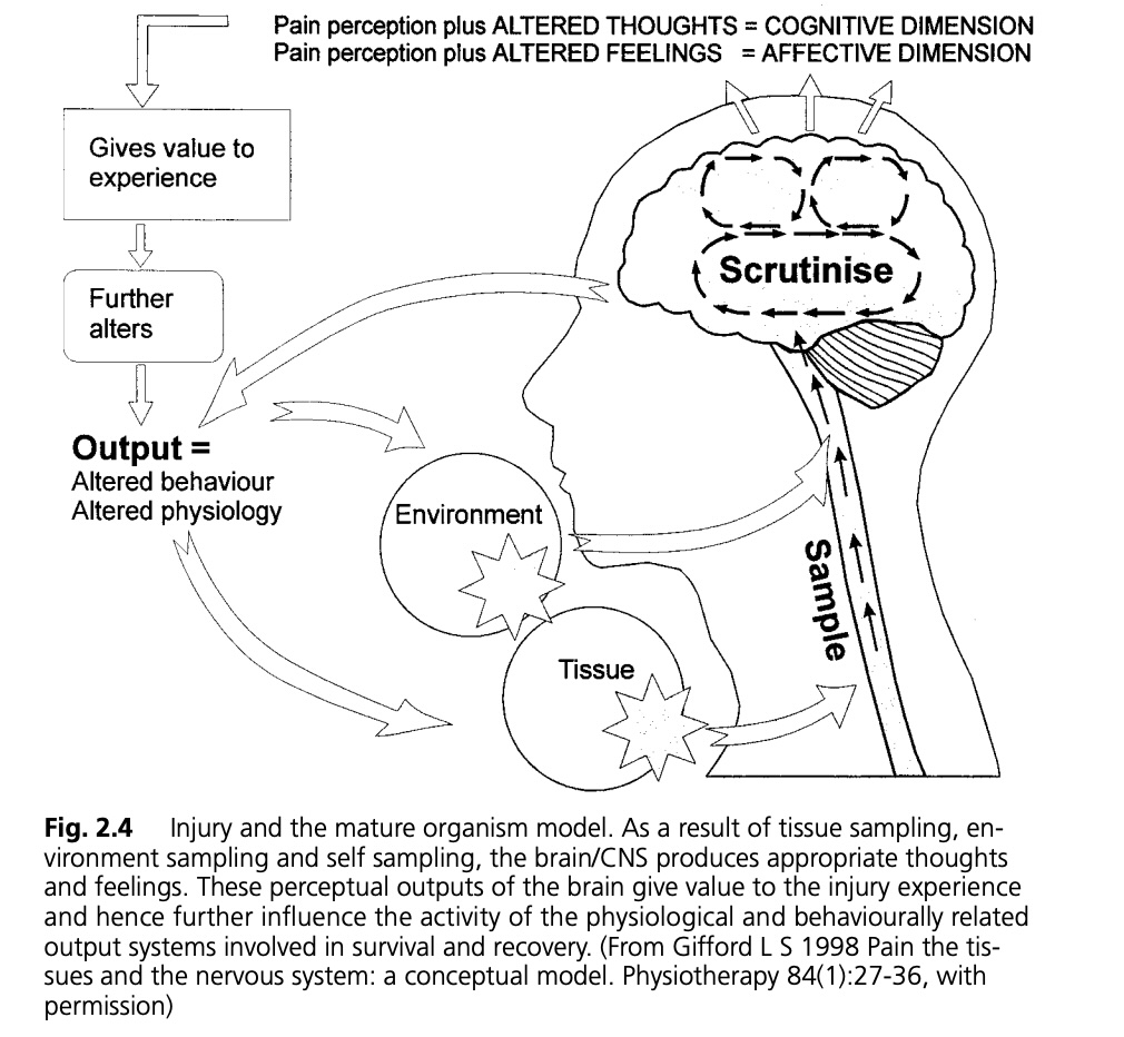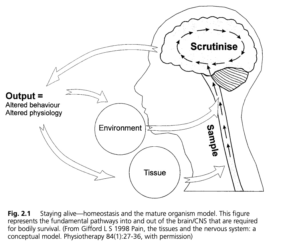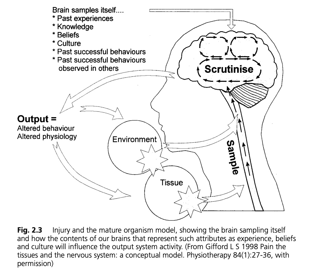 Louis Gifford amplió esta visión con lo que llamó el Mature Organism Model, un modelo que cambia de raíz la forma en que entendemos el dolor. Desde esta perspectiva, el dolor no es un simple reflejo ante un estímulo nocivo ni una falla del sistema, sino una expresión más de la biología del estrés y la supervivencia.